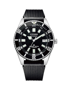 Read MoreCal. 9051 movement uses anti-magnetic materials for the balance spring and surrounding components to boost the overall magnetic resistance of the watch. This new Promaster Auto Diver is capable of maintaining performance even when placed 1 centimeter from a device emitting a magnetic field of 16,000 A/m. The watch is also resistant to magnetic fields from everyday devices, including smartphones, and it can even be used aboard ships with magnetic compasses. In addition to magnetic resistance, the watch also has ISO compliant*2 water resistance up to 200 meters. It can run for 42 hours when fully wound, with daily accuracy of -10 to +20 seconds – solid performance for a mechanical watch. The hour hand, minute hand, and indexes have a luminescent coating to ensure high visibility.The bold trapezoid indentations around the edge of the case are both stylish and functional, providing a rugged look and a sure grip when using the bezel. The case has a two-piece structure and uses Super Titanium™ with CITIZEN’s proprietary surface-hardening technology, Duratect*3, making the watch incredibly light for its size. The rugged and tough good looks of this model are enhanced by an intricate almost stud-like pyramid pattern on the bezel and the dial with shades that shift depending on the viewing angle.
