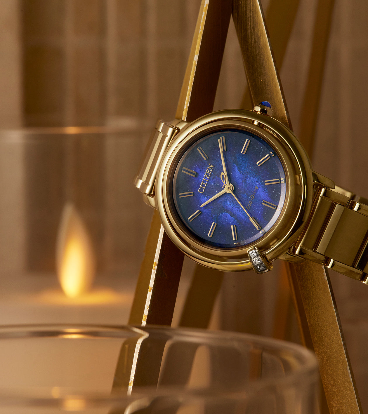 The Citizen L Arcly blends timeless elegance with a touch of romance, offering a glamorous expression of sustainable luxury. Inspired by the original Citizen Sunrise, this gold-tone stainless-steel timepiece is a versatile and graceful accent for any occasion.