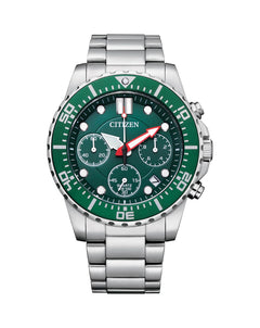 Read MorePassionate about diving? Sport? Then look no further as this timepiece is perfect for adventurers. A robust construction, over-sized 43mm case and bold styling provide a sporty presentation. This diver’s style statement chronograph is equipped with quartz movement and advanced time measurement function up to 1/20 second with a 4-beat semi-sweep center hand. Secondary functions include date, flat mineral crystal glass and water resistance up to WR100/10 Bar for swimming and snorkelling. This model has a silver stainless steel bracelet and case against a contrasting green dial. The range provides some vivid colour variations and textures to choose from for even greater visibility and sports appeal. Calibre 6520.