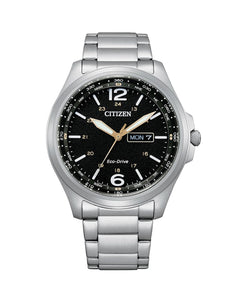 Read MoreNew to the Dress collection, this sporty and sophisticated design features white large Arabic Numerals at the compass points and large indices for enhanced visibility against a textured black 24-hour dial and rose gold-tone hands. Additional features include Eco-Drive technology, stainless-steel case and bracelet, short fold-over double-push closure, day-date calendar, and water resistance of 100 meters.