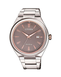 Read MoreTurning heads both with its looks and performance, this watch provides forward thinking technology and classic styling with contemporary flair. The vintage allure of the silver toned bezel, case and band is complimented by the on-trend combination of a charcoal hued face with rose gold markings, creating a look that is refined with a subtle edginess. With Eco-Drive technology, batteries are a thing of the past, as light energy is stored and converted to power with enough held in reserve to keep the watch running for 8 months in complete darkness.