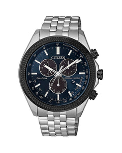 Read MoreTaking it up a notch with the reinvented Citizen Perpetual Calendar Chrono timepiece with a 1/20 second chronograph, perpetual calendar and dual time in a stainless steel case and bracelet completed with a blue-gray dial. Featuring our Eco-Drive technology – powered by light, any light. Never needs a battery. Caliber number E820.