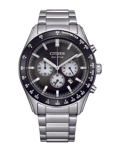 Read MoreAn extension of the Chronograph range, this multigenerational chronograph is your perfect accessible pilot timepiece. Featuring an array of aviation level functionality such as Eco-Drive technology ensuring your watch never loses power, a thin bezel with a wide dial for better visibility and luminous markings. Armed with base 30 pulsations for high accuracy heart rate count. This method is one which is used medically to measure heart rates both quickly and accurately. Start counting the heart rate for 30 beats from the 12 hour marker. When you reach 30, where the second hand points is the heart rate. Secondary functions include date, 12/24 hour time, water resistance to WR100/10 Bar, ideal for swimming and snorkelling. This model has definite classic appeal with a dress edge found in the stainless steel bracelet style band, black dial and stainless steel case and bezel, topped with a Sapphire crystal glass.
