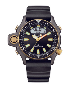 Read MoreCelebrate 40 years beneath the surface. The limited-edition Promaster Aqualand Quartz redefines a classic with a bold, hybrid construction built for modern divers. Commemorating four decades of the Aqualand legacy, this ISO-compliant timepiece is packed with pro-level features—maximum depth memory, rapid ascent alarm, and auto start dive mode—making it the perfect companion for any underwater adventure. A robust 43.5mm grey-tone stainless steel case with a screw-down crown is paired with a durable black polyurethane strap, while gold-tone accents add a touch of retro flair. The black dial features luminous hands and markers, alongside an ana-digi display at 12 o’clock for enhanced readability. Water resistant to 200 metres and powered by the precise Calibre C520 quartz movement, this collector’s piece is ready to dive into the next chapter.
