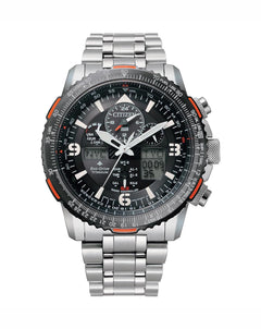 Read MoreNot only is this bold timepiece powerful, it redifines atomic timekeeping. This remarkabe dynamic model features timekeeping in 43 cities. It also has a perpetual calendar, dual time, alarms and pilots rotating slide rule bezel, Super Titanium ™ case and bracelet and a black dial complimented by bright orange tones with sapphire glass. Also featuring Eco drive technology, powered by light, any light. Never needs a battery. *Please note that the radio-controlled functionality will not work in Australia due to the absence of radio transmitting stations within range. These stations are exclusive to four regions: Europe, USA, China and Japan. However, this does not affect manual time adjustment. Please refer to your instruction manual for guidance.