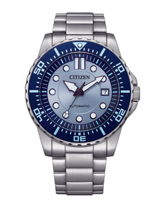 Read MoreThis new Limited Edition from our Mechanical Collection blends classic elegance with modern style, highlighting Citizen's renowned craftsmanship. It features a 43mm silver-tone stainless-steel case and matching bracelet, complemented by a bold blue dial for easy readability. Water-resistant up to 100 meters, this watch is both stylish and practical, making it an ideal choice for daily wear.